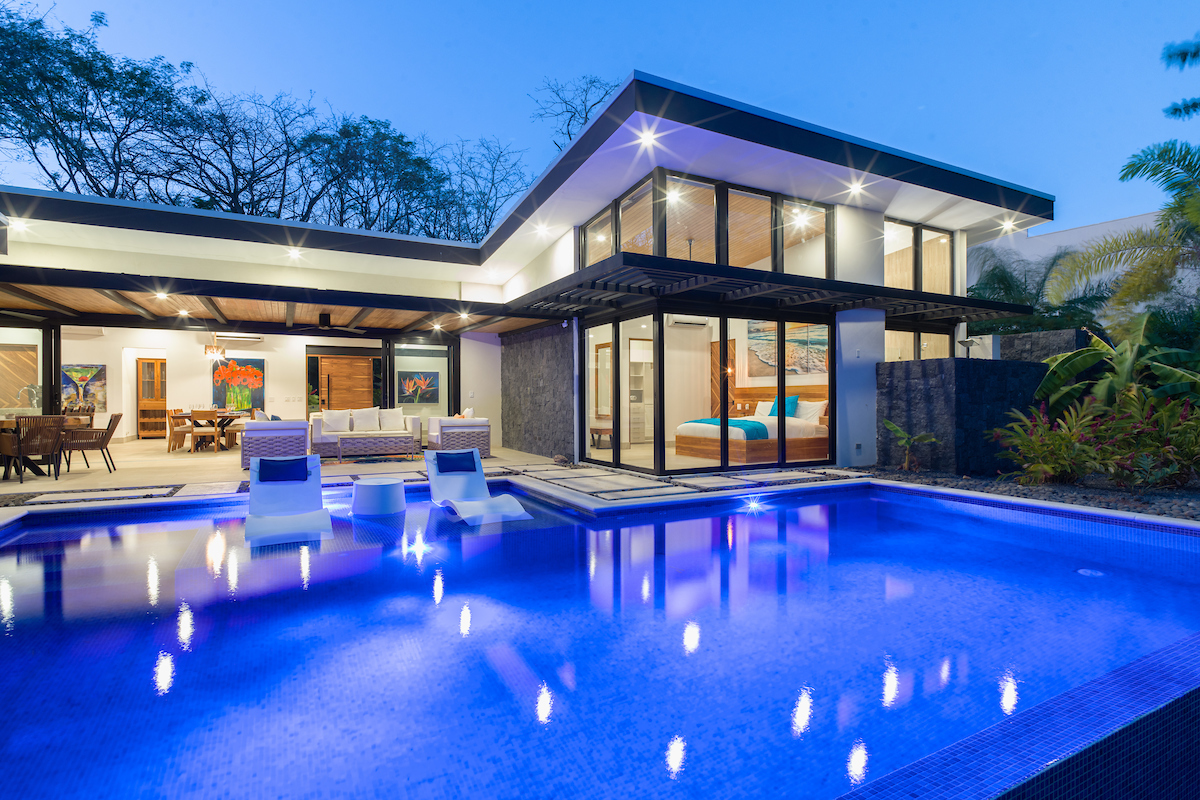 Just a short stroll from Tamarindo Beach, Villa Las Vistas offers a serene blend of elegance and comfort. Filled with natural light from its glass doors and clerestory windows, the villa invites guests to embrace a seamless indoor/outdoor lifestyle.